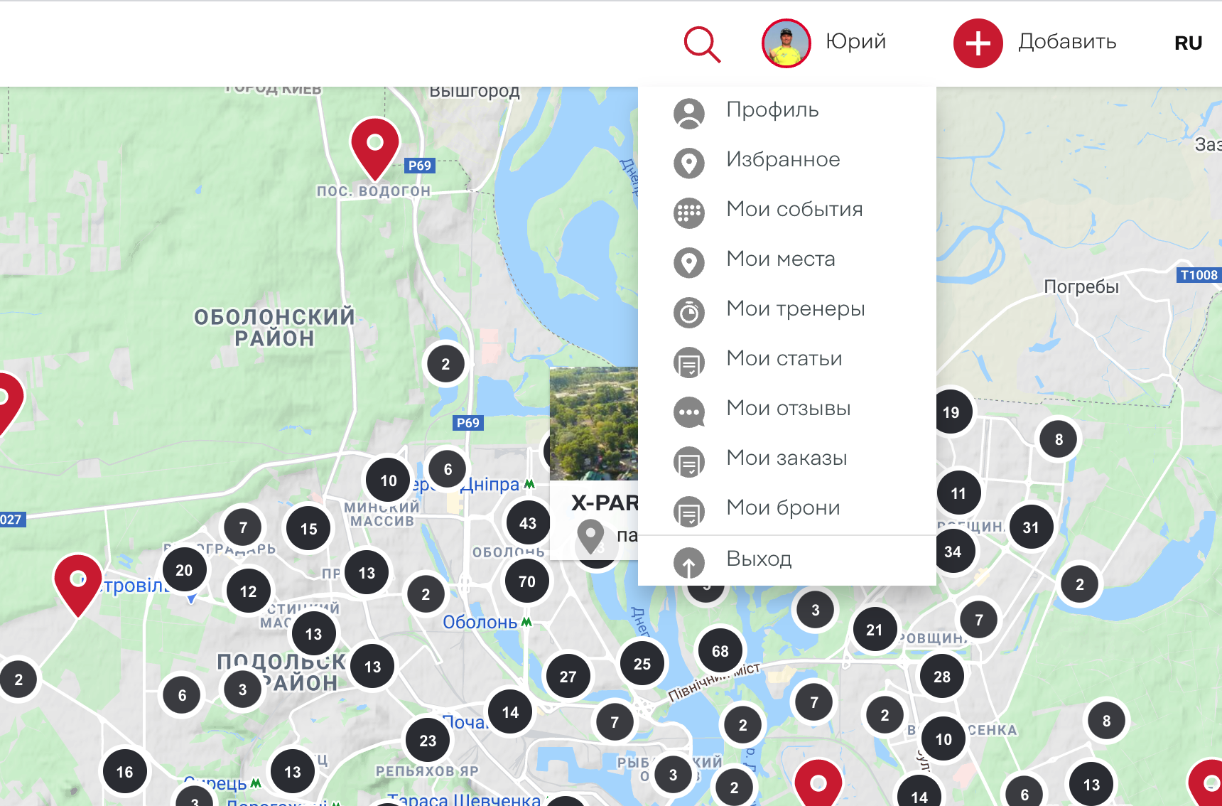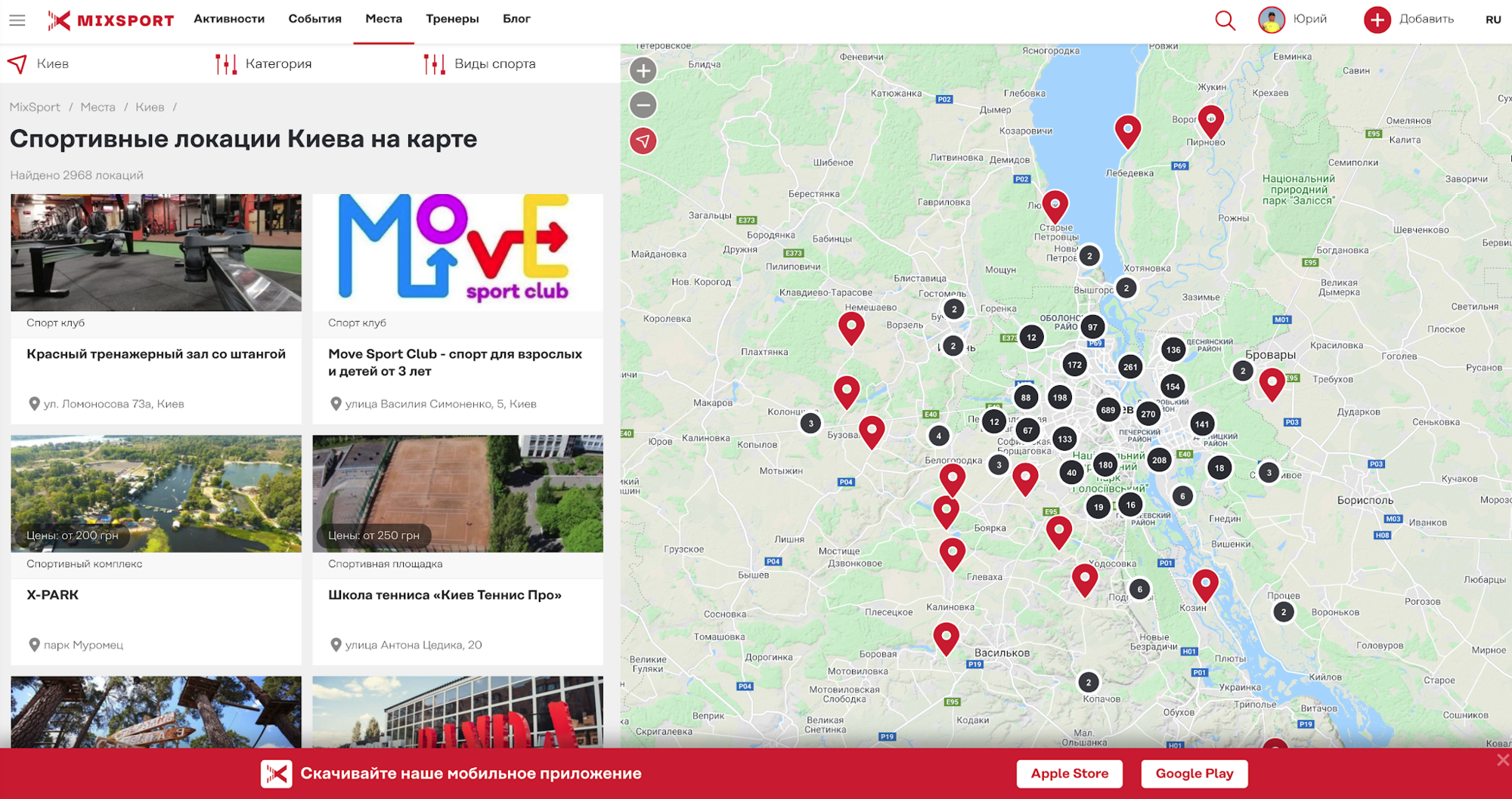 Юрій Зозуля: Заходи часто прив'язані до локаціях і сезону. Розділ на платформі про заходи різноманітний і динамічний. Якщо тренери і локації – це довгограючий продукт, в який досить один раз внести інформацію і іноді її оновлювати, то заходи потрібно генерувати і описувати постійно. Наприклад, до локдауна ми розміщували до 300 заходів на тиждень.