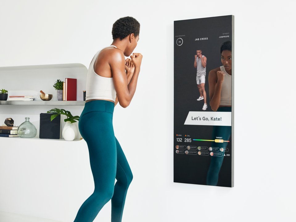 Mirror — спеціальний девайс у вигляді дзеркала, призначений для домашніх тренувань. Він являє собою LCD-екран із зображенням віртуального фітнес-тренера. Віртуальний інструктор тренує користувача за певною фітнес-програмою, яку потрібно попередньо вибрати через спеціальний додаток на смартфоні. Серед програм є бокс, йога, пілатес, силовий тренінг, кардіо і т.д. Тренер стежить за правильністю виконання вправ і дає підказки.