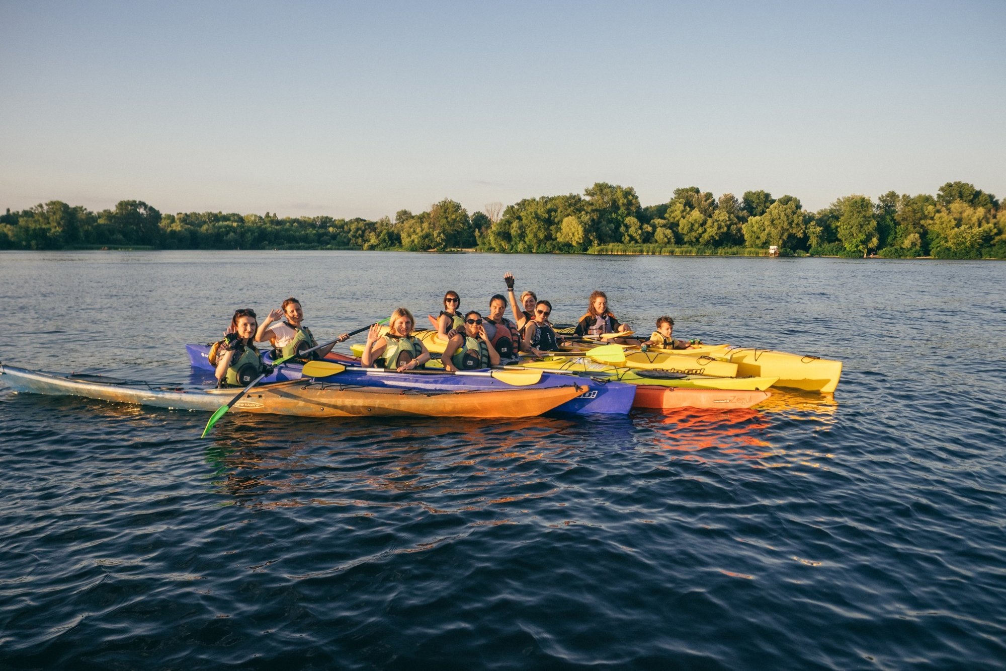 З 11:00 до 13:00 сплавляємось з інструктором на каяках, байдарках, SUP .