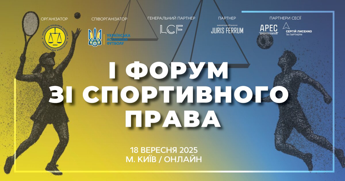 Асоціація правників України спільно з Українською асоціацією футболу запрошують вас на І Форум зі спортивного права — подію, що об'єднає правників, спортсменів, арбітрів, менеджерів та всіх, хто працює на перетині спорту й права.