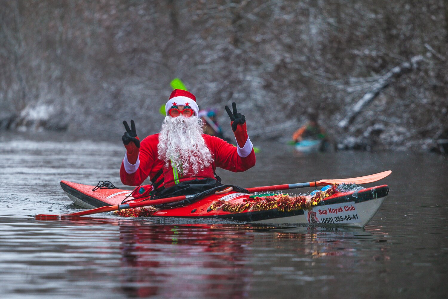 Перед святами ми за традицією прикрашаємо себе, каяки, SUPи та байдарки й разом з інструкторами вирушаємо у святковий заплив.