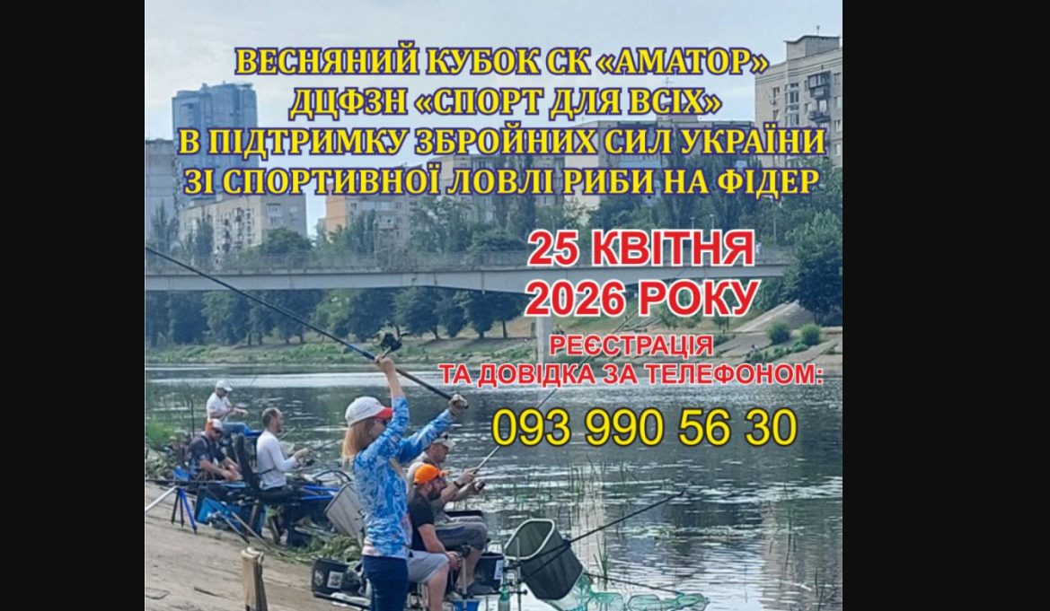 Add to calendarЯкщо ви давно мріяли випробувати себе на змаганнях зі спортивної ловлі риби фідером або ж ви хочете глибше познайомитись з риболовним спортом, тоді запрошуємо на справжнє риболовне свято, яке відбудеться 25.04.2026р. на Русанівській набережній!