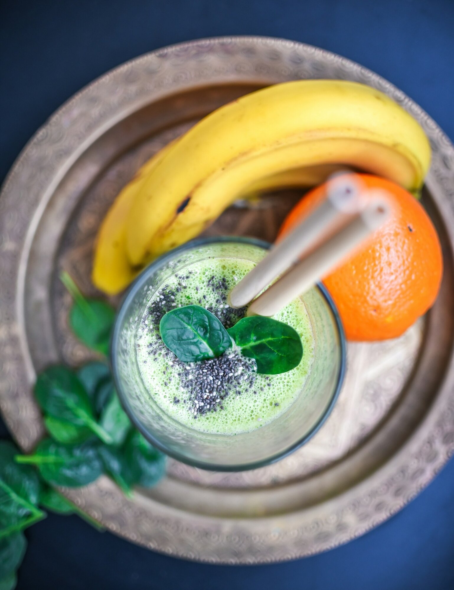 - Бленд: 1 мерка протеина (сывороточный/растительный), 1 банан, горсть шпината, 200 мл молока, 1 ст. л. семян льна.