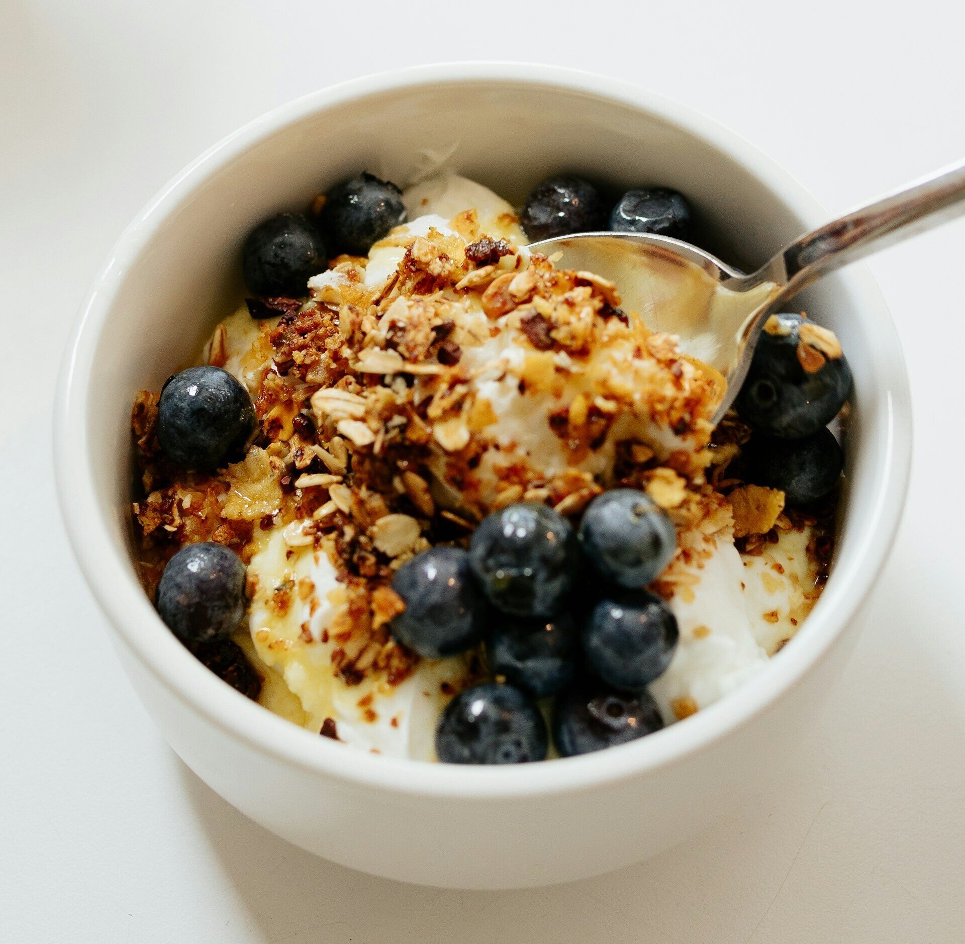 1) Греческий йогурт с ягодами и гранолой без сахара