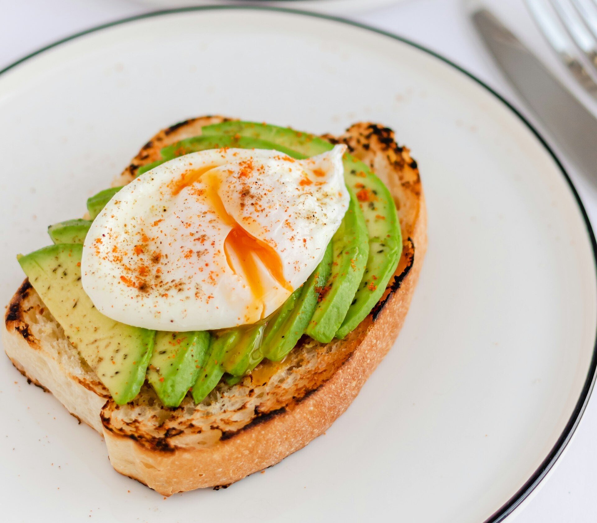 - Что нужно: цельнозерновой тост, ½ авокадо, 1–2 яйца (пашот/скрэмбл), лимонный сок, соль, перец, чили.