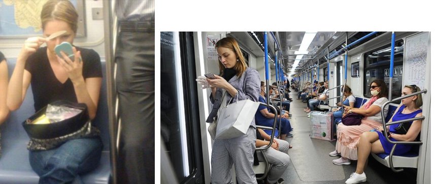 Не стоит наносить макияж или поправлять прическу в салоне метро — это неуважение к окружающим.
