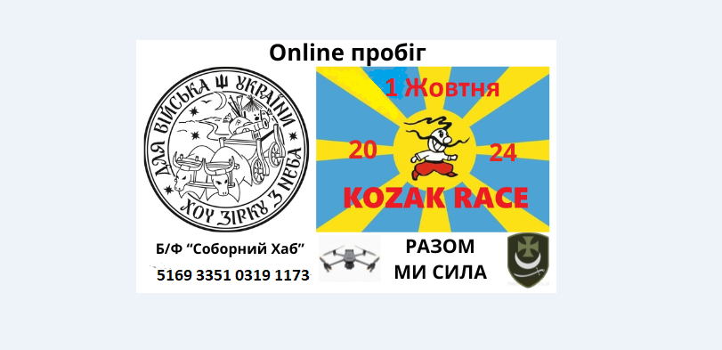 В этот выдающийся день ультрабеговой клуб KOZAK RACE при поддержке БФ "Соборный Хаб" организует благотворительный онлайн-пробег для сбора средств на квадрокоптер Mavic-3T Enterprise для аэроразведчиков 5-го батальона Первой Президентской бригады оперативного назначения имени гетмана Петра Дорошенко "БУРЕВИЙ", единение НГУ.