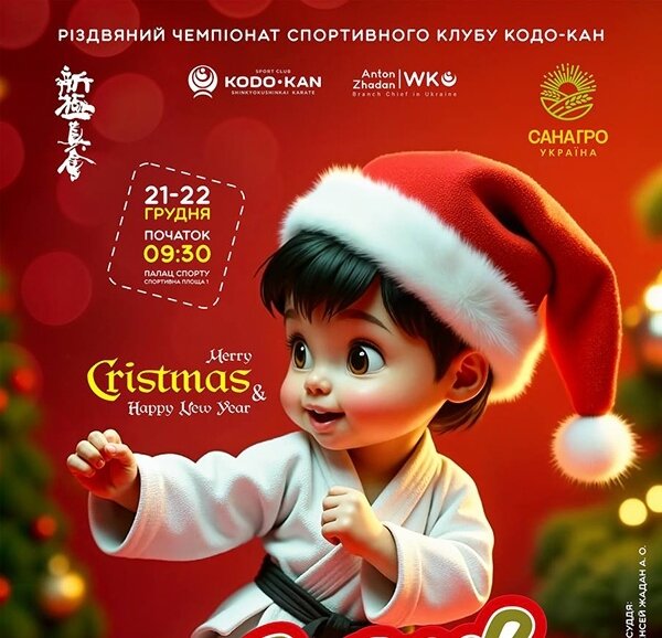 Add to calendar22 декабря 2024 года в Киеве, во Дворце Спорта пройдет открытый Рождественский Чемпионат по киокушинке каратэ (WKO Shinkyokushinkai) среди детей, юношей и юниоров в разделе "кумите" (группы А и Б).