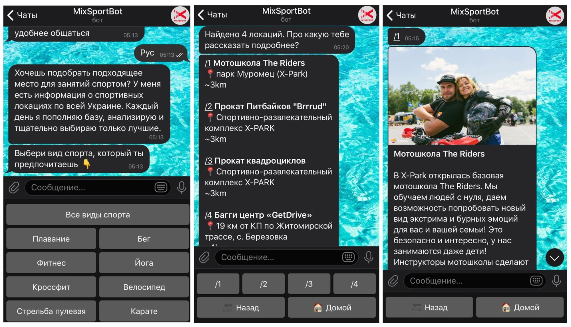 Бот від Mixsport дарує українцям можливість шукати спортивні локації, не витрачаючи на це багато часу і не докладаючи особливих зусиль!