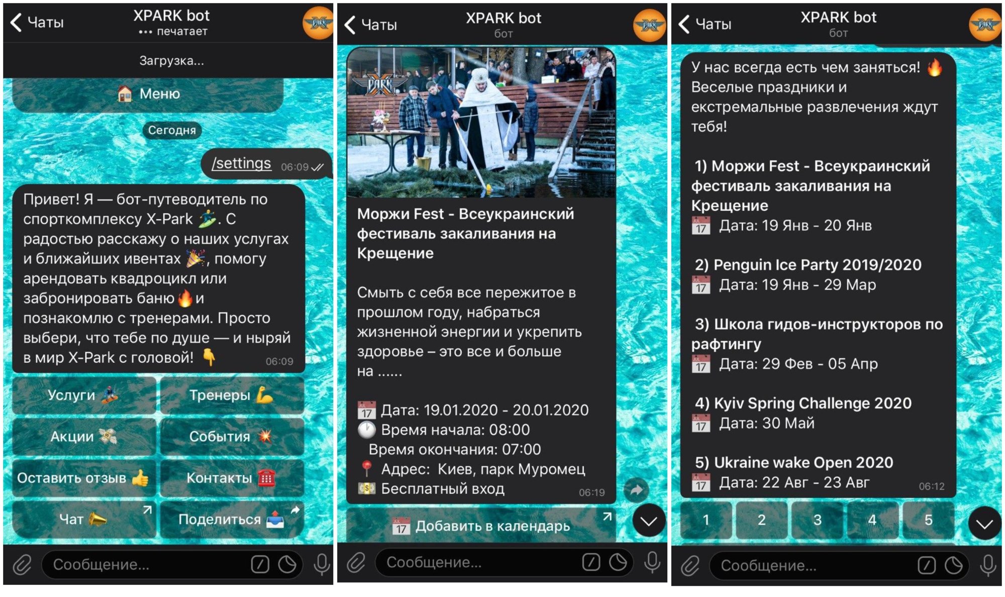 Крім послуг, в @Xpark_bot відображаються івенти, що будуть відбуватися в парку найближчим часом. У боті є всі необхідні дані: дата, час і детальна інформація про подію.