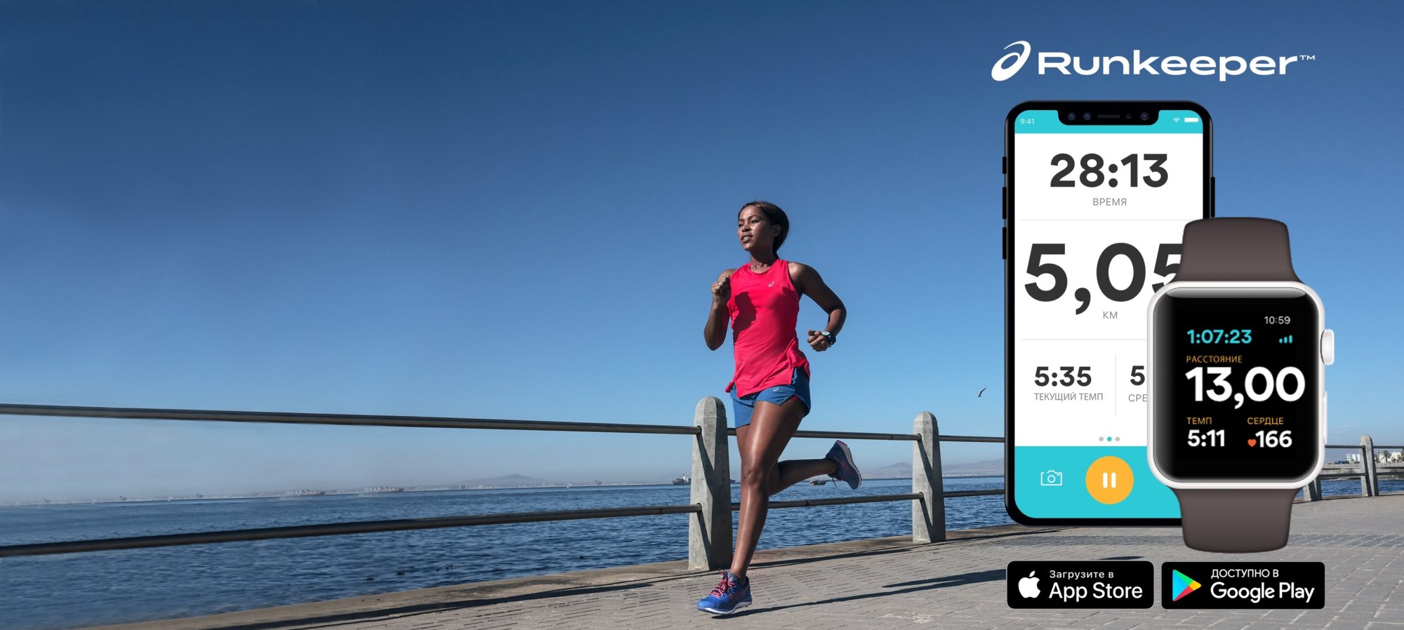 RunKeeper відображає інформацію про дистанцію, швидкість, час і спалені калорії. Ви можете налаштувати аудіо повідомлення під час пробіжки від голосового помічника. Якщо у вас є фітнес-браслет, додаток буде відображати частоту серцевих скорочень. Під час пробіжки можна робити фотографії, які потім будуть відображені на мапі. Також програма надсилає повідомлення про особисті рекорди, якими можна поділитися в соціальних мережах. Налаштовувати плей-ліст і перемикати треки ви зможете прямо в додатку.